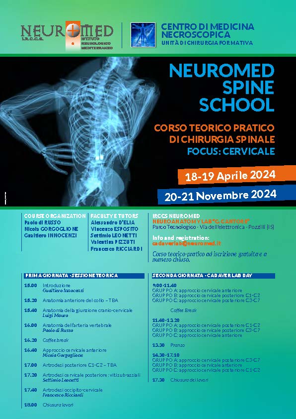 2024, Corsi passatiCorso teorico pratico di chirurgia spinale Fai clic qui 8th EDITION MEMORIAL CANTORE Corso di dissezione e tecniche implantari su cadavere