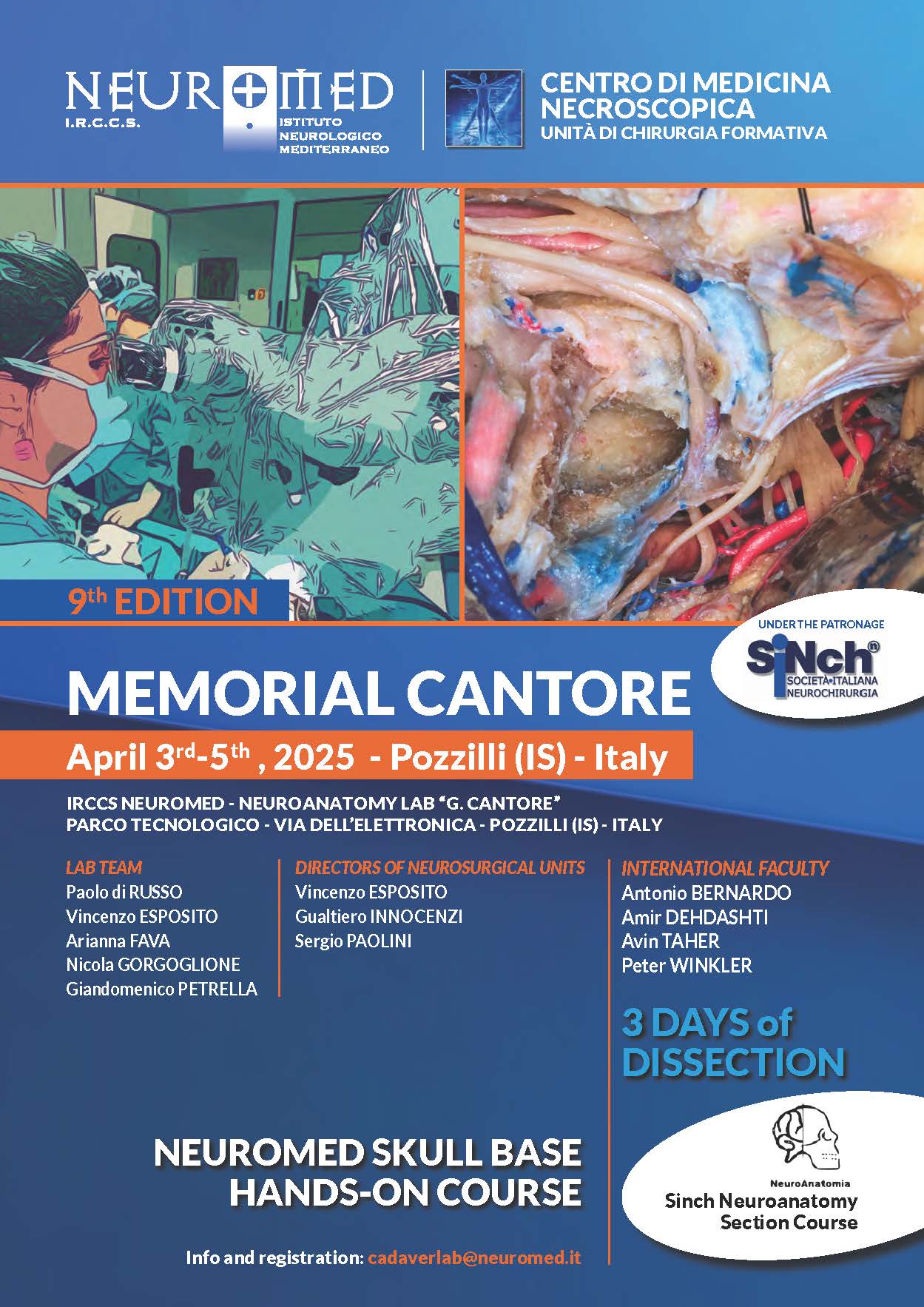 To submit send THE APPLICATION AND PAYMENT RECEIPT TO: anatomylab@neuromed.it
