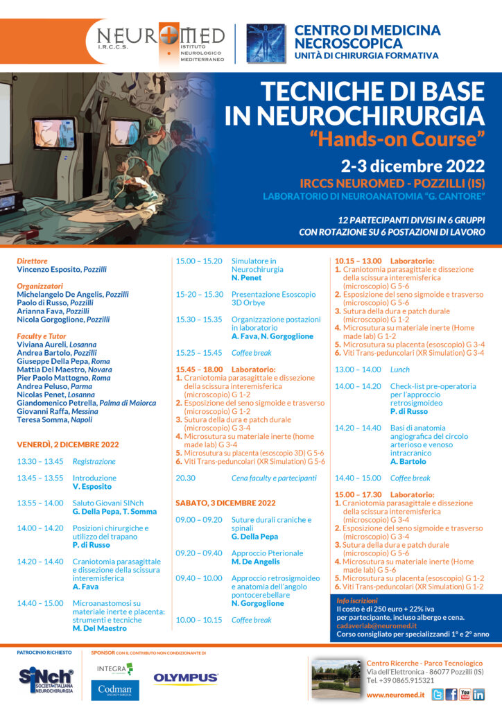 - Info e iscrizioni: anatomylab@neuromed.it